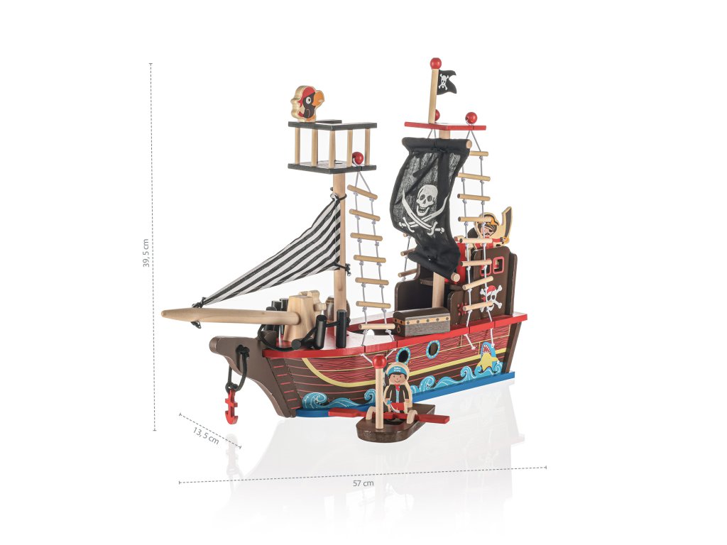 A fából készült kalózhajó, amely sok történetet mesél el, és a végtelen szórakozás forrása, kisfiú kalózod kedvenc játékává válik. A hajó ideális eszköz gyermeke fejlődésének támogatására. A biztonságos, nem mérgező festékeknek, a gyönyörű részleteknek és a kidolgozásnak köszönhetően 3 éves kortól alkalmas gyermekek számára. A minőségi fából készült nemcsak szórakozást, hanem dekorációként való felhasználást is kínál.