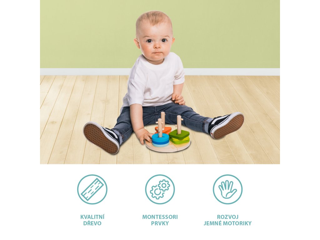 fa színes formákat lehet helyezni. A játék fejleszti a koordinációt, a térbeli