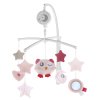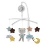 A mozgó plüssjátékok a természetes motívumok finom színeiben, melyeket egy aranyos állatka ural, számos kellemesen édes dallammal párosulnak. Mindez támogatja a baba hallási, motoros és vizuális érzékeit. A kiságyában így kellemes légkör teremtődik, amely a babát könnyen megnyugtatja és finoman a mesék birodalmába vezeti.