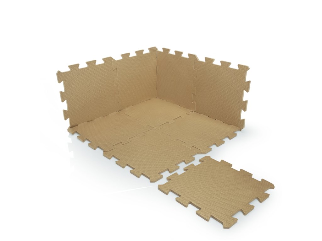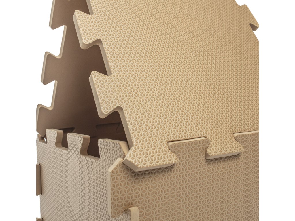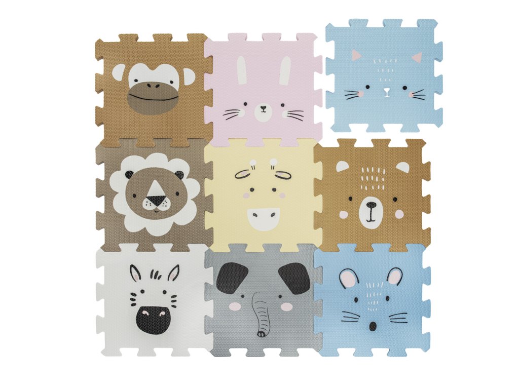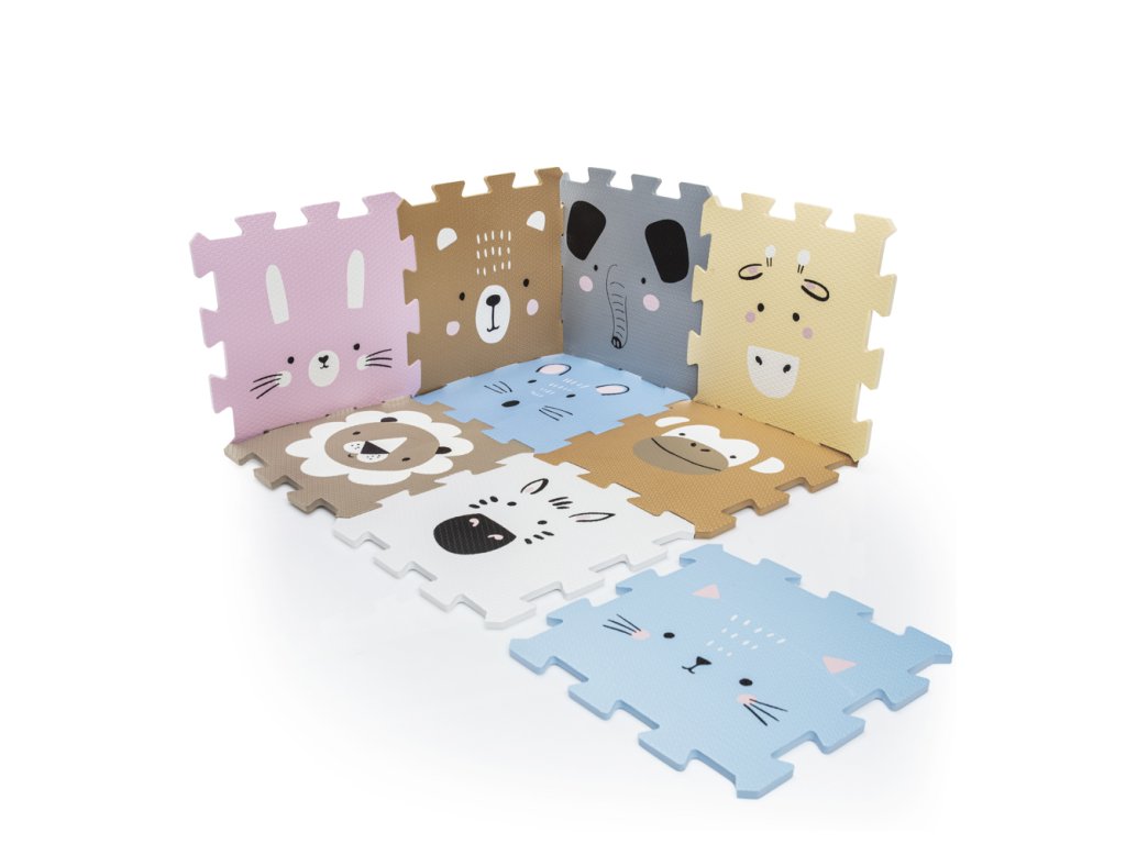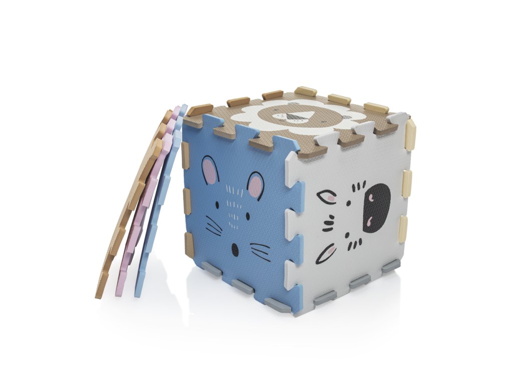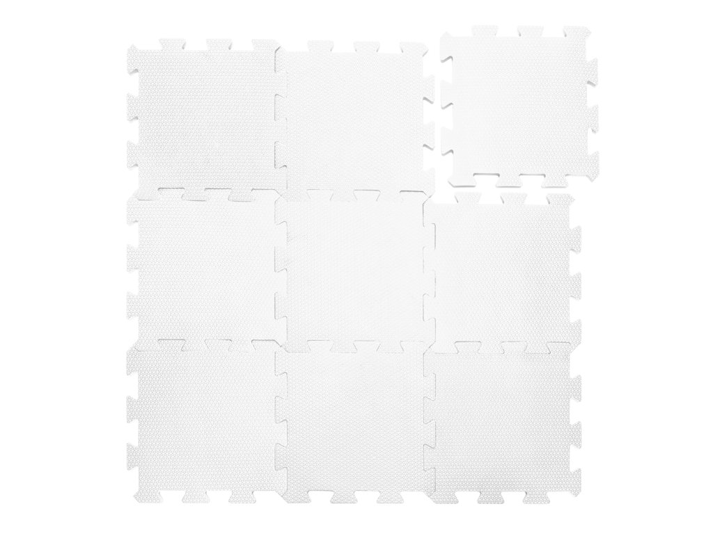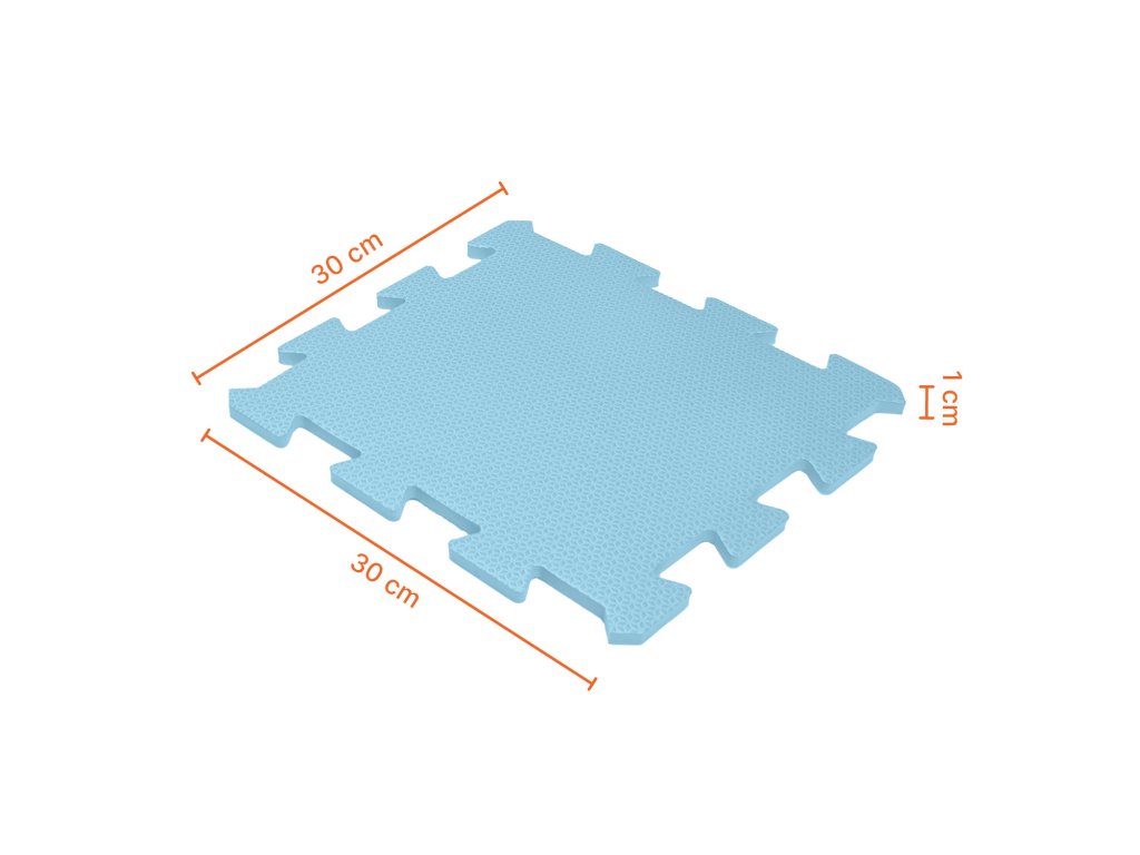 Az egyes 30 × 30 cm-es lapok (9 db) tökéletesen illeszkednek egymáshoz. Az alátét születéstől kezdve alkalmas gyermekek számára, ártalmatlan és kellemes anyagból készült.