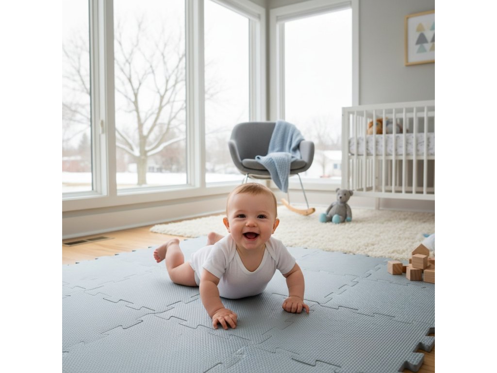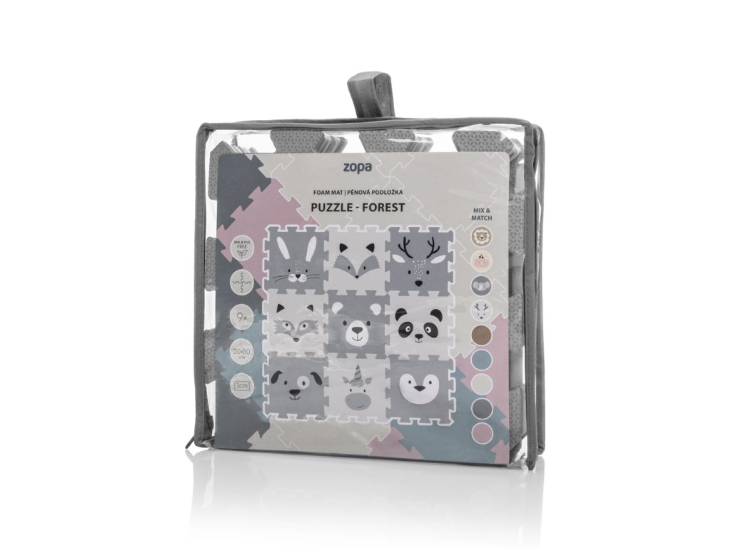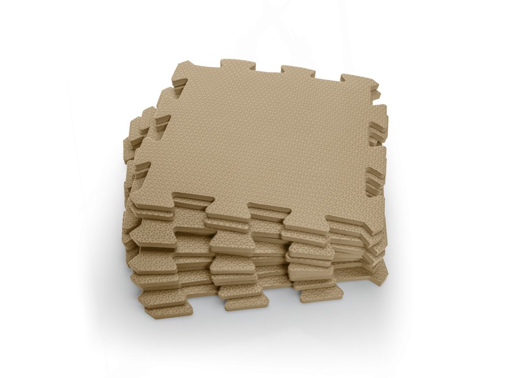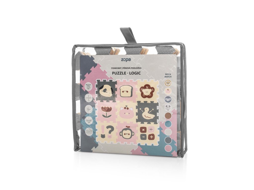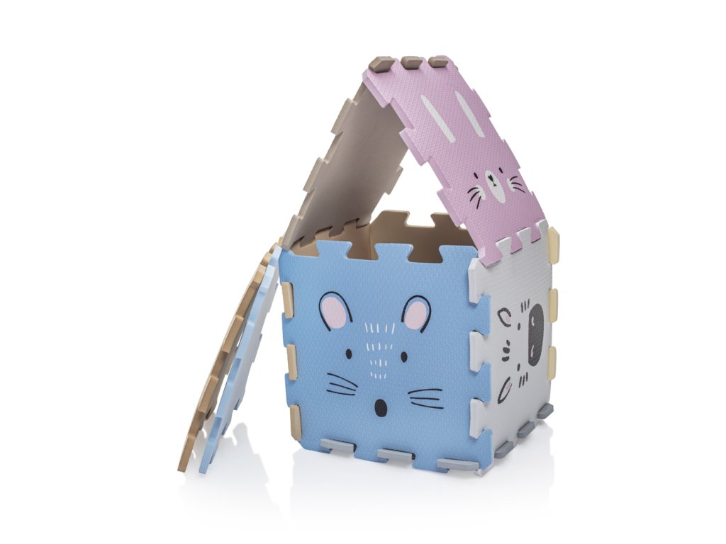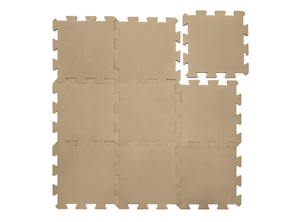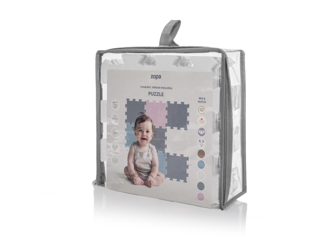 Az egyes 30 × 30 cm-es lapok (9 db) tökéletesen illeszkednek egymáshoz. Az alátét születéstől kezdve alkalmas gyermekek számára, ártalmatlan és kellemes anyagból készült.
