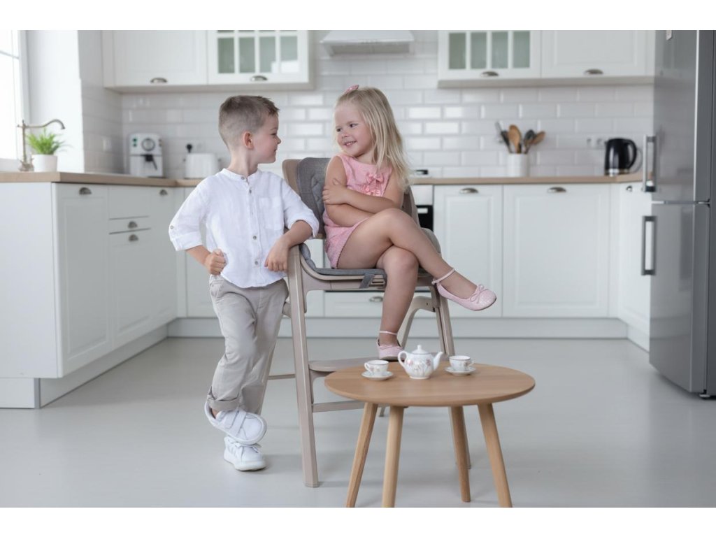 Amint a gyermek önállóan tud ülni, könnyen eltávolíthatja az újszülött szettet, és egy praktikus eltávolítható pulttal ellátott etetőszéket kap. Az ülés és a lábtartó magassága állítható, hogy az növekedés minden szakaszához alkalmazkodjon.