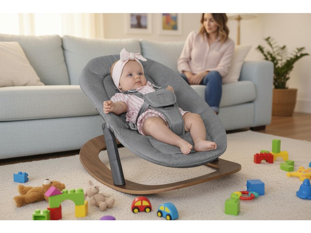 A bölcsőtalp csatlakoztatásával az újszülött szett kényelmes fekvőfelületté alakul. A gyengéd ringatózás megnyugtatja a babát, és segíti a természetes alvási és pihenési ritmusát. A talp stabil, könnyen felhelyezhető, és az elegáns fa dekorációjának köszönhetően illeszkedik a modern enteriőrbe.