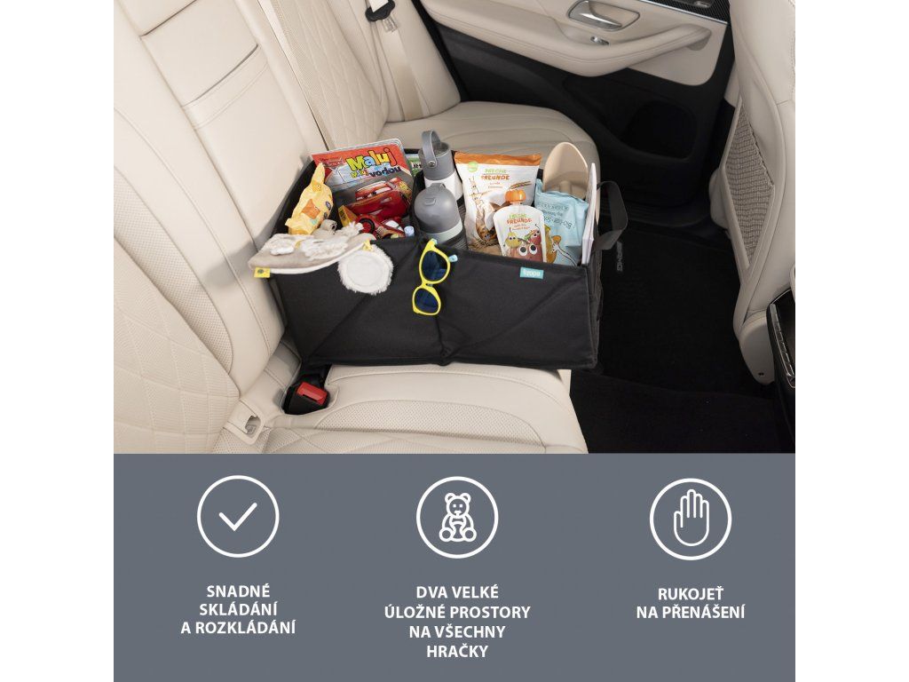 A praktikus és összecsukható Zopa autószervező ideális segítőtárs a gyermekekkel való utazáshoz. A tökéletes tárolási lehetőségekhez tervezték. Könnyen szétszedhető, így nem foglal sok helyet, és magával csomagolhatja a poggyászba vagy a kézitáskába. A két fogantyúja kényelmes és egyszerű hordozást garantál. Szíjak segítségével könnyen rögzíthető az autóban is.