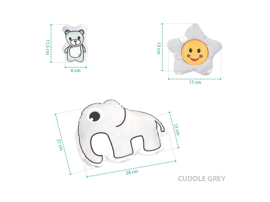 A puha Comfort játszószőnyeg ideális első játék a babád számára. Az interaktív plüssjátékok csörgővel szórakoztató módon motiválják a babát a szem-kéz koordináció fejlesztésére, majd a megragadásra. A játékok egyszerűen levehetők a játékhídról, és használhatók a gyermekülésen vagy a babakocsiban.