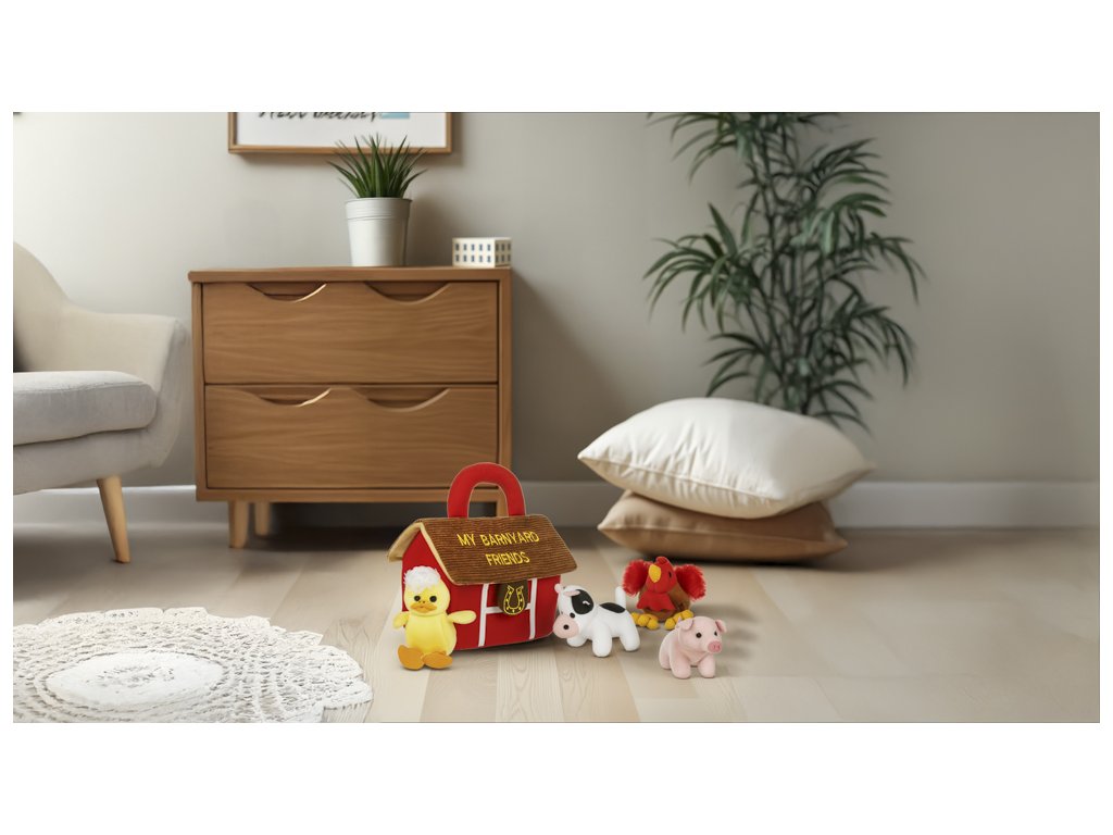 Szeretnél örömet szerezni és egyben támogatni a gyermek fejlődését? Ez a plüss házikó, tele állatokkal, a megfelelő választás!