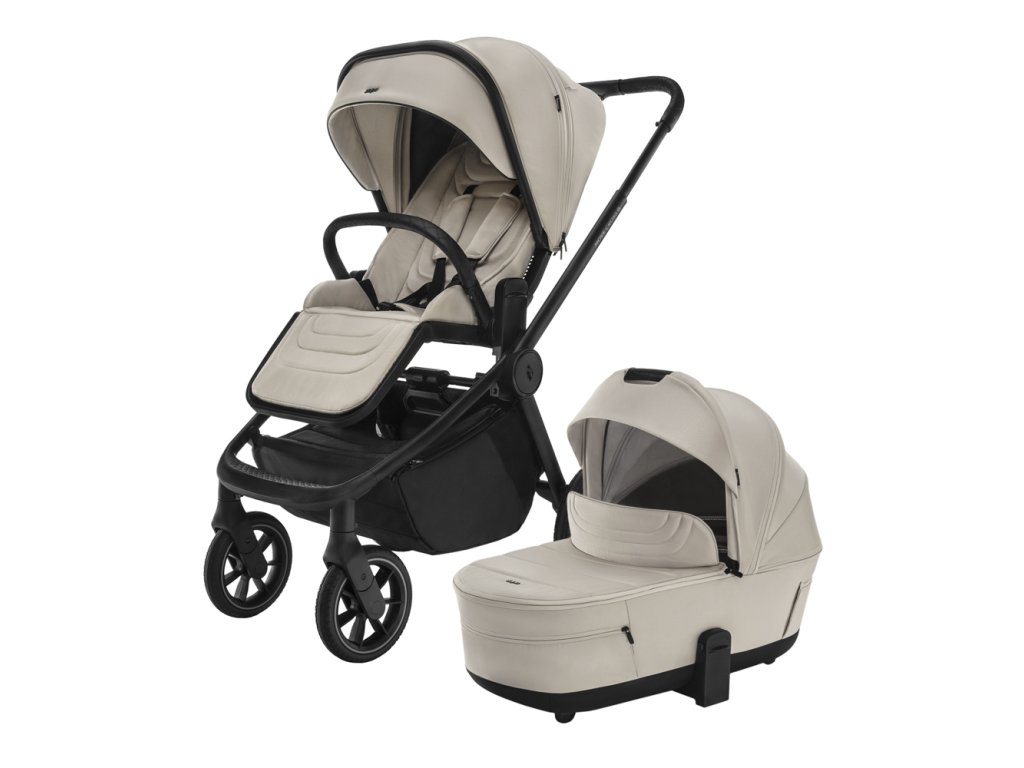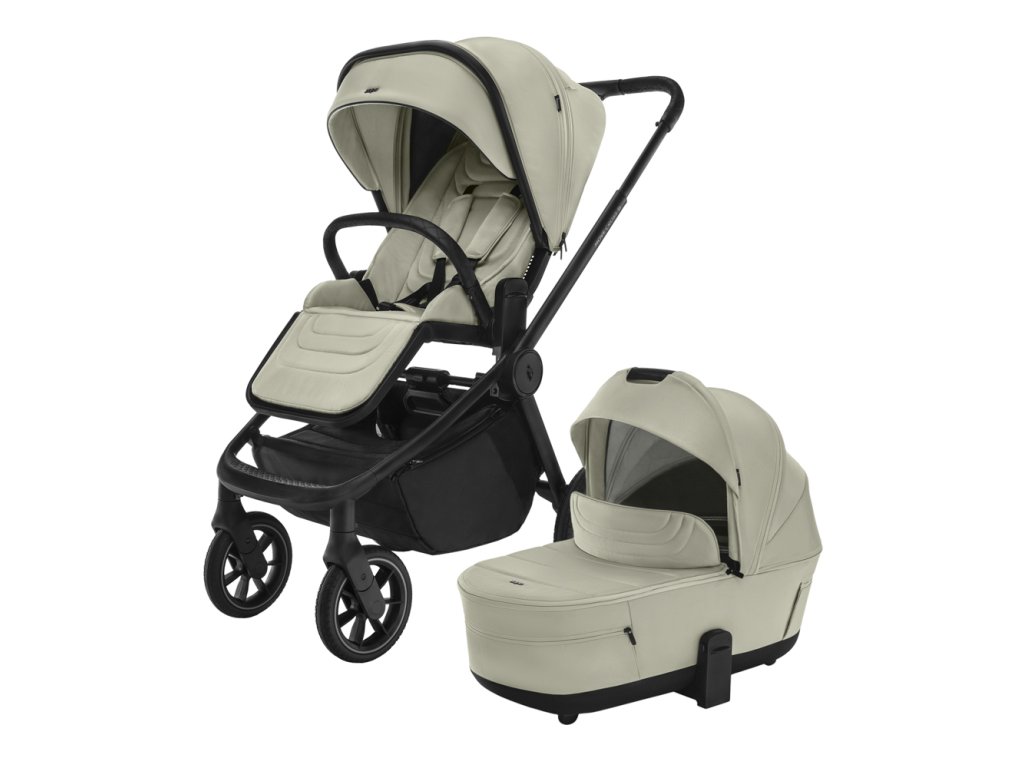 A praktikus részletek közé tartozik a mágneses övcsat, a zárható kosár, a lehajtható korlát és a fogantyú az összecsukott babakocsi hordozásához. A babakocsi könnyen összecsukható és egy kézzel is hordozható. A csomag tartalmaz esővédőt, lábzsákot és stílusos pelenkázótáskát.