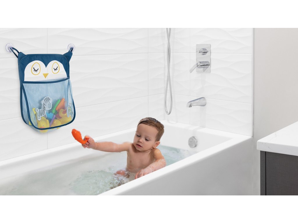 Rendszerező, aminek köszönhetően mindig rend lesz a fürdőszobában. A két tapadókorongnak köszönhetően a rendszerező a fürdőszoba falára rögzíthető. A hálós zseb légáteresztő, és lehetővé teszi, hogy a játékok megszáradjanak a következő fürdésig. Teljes méret: 32 × 38 cm.