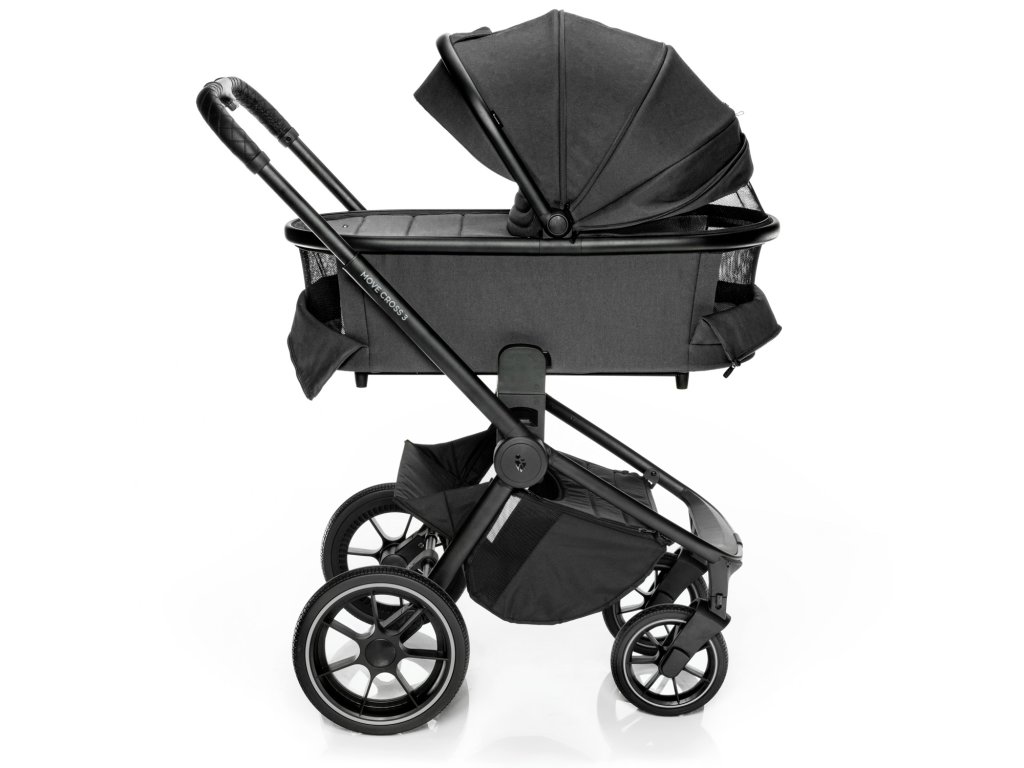 végtelen utazásra könnyedén és stílusosan a Move Cross 3 babakocsival. Extra nagy gumikerekeivel és rugós alvázával egyetlen terep sem jelent akadályt. Menjen, ahová a szíve húzza, akár városi utcákon, akár a vadonban – a Move Cross 3-mal mindig biztos lehet a kényelmes és biztonságos utazásban