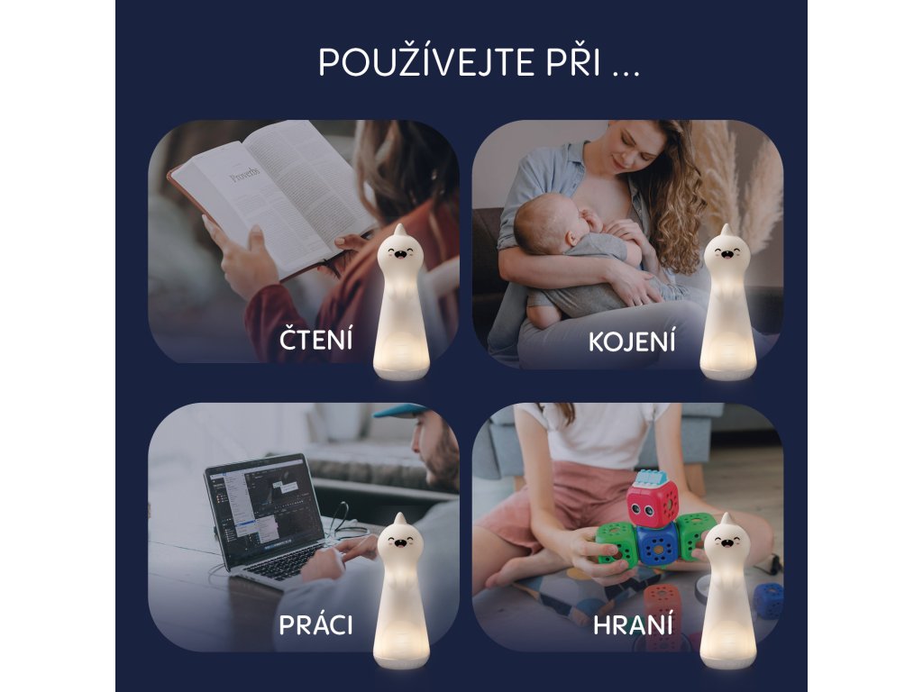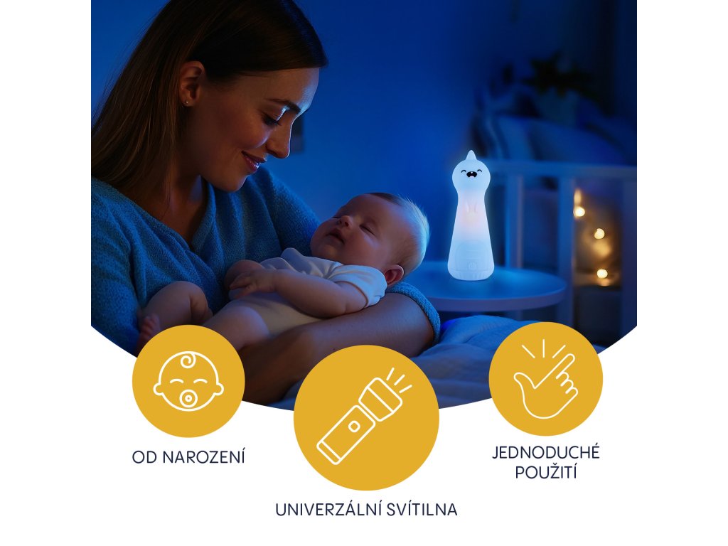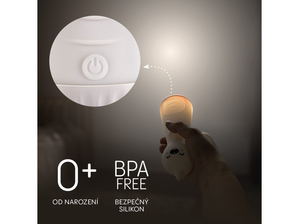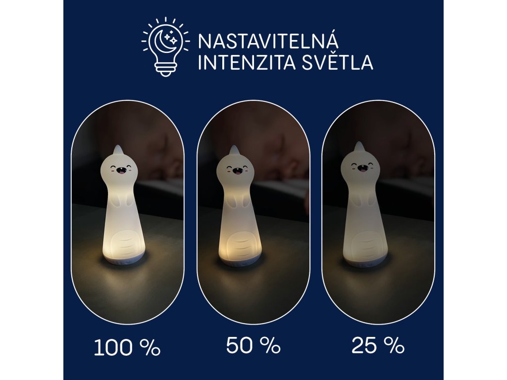 szabályozható fehér fénnyel van felszerelve, amelyet könnyen hozzáigazíthat az aktuális igényekhez. A játékosabb hangulat megteremtése érdekében lehetővé teszi a fényerő zökkenőmentes átmeneteit, amelyek finom koppintással egyszerűen megváltoztathatók. A lámpának köszönhetően a kis kalandor biztonságban érzi magát, és segít neki elaludni.