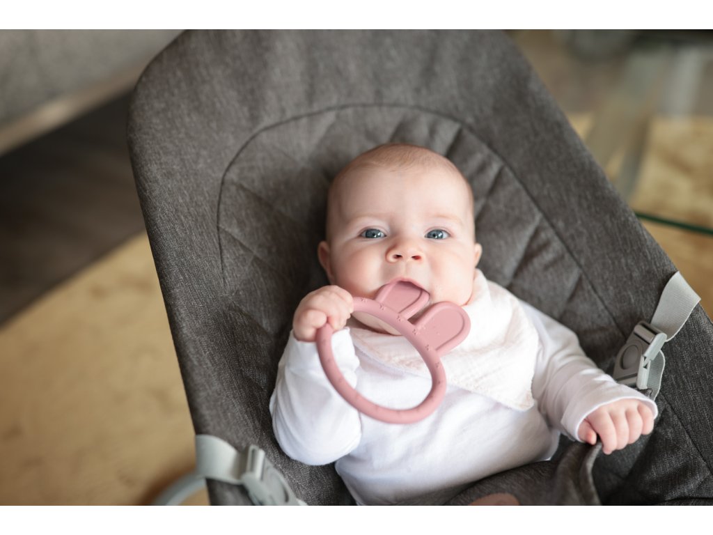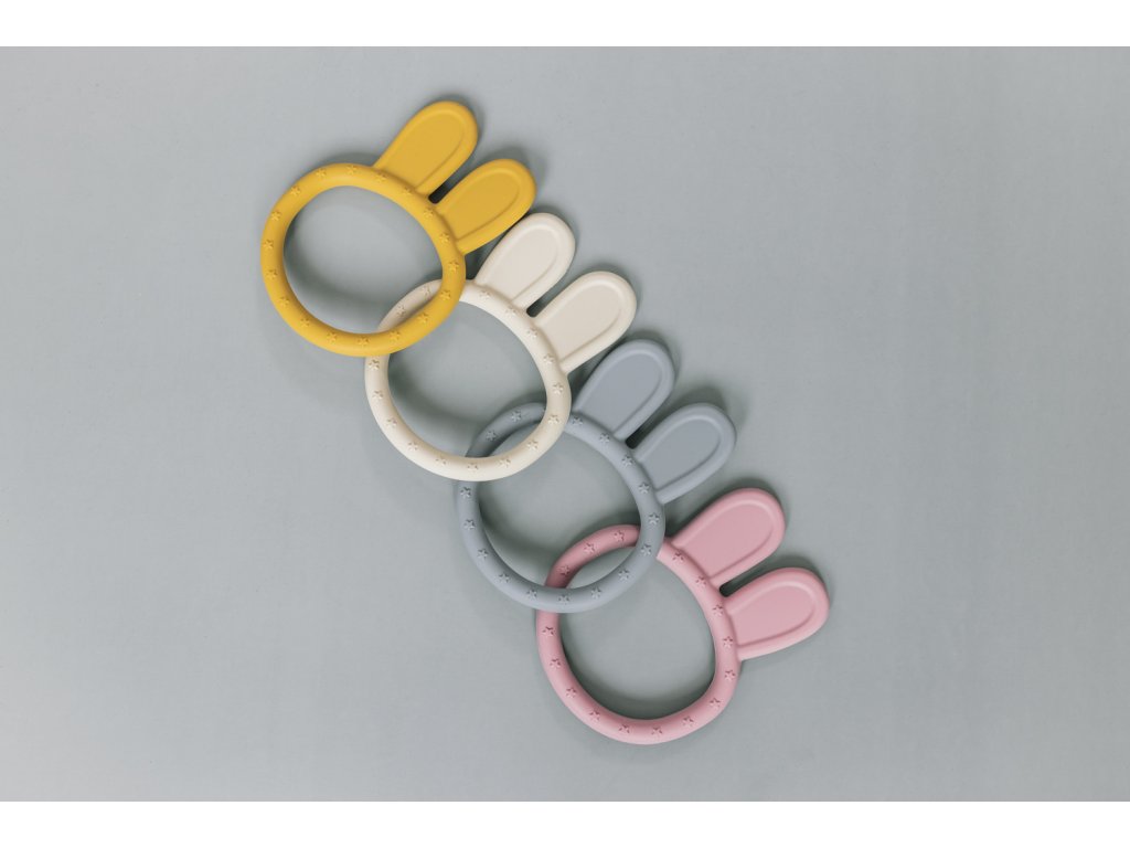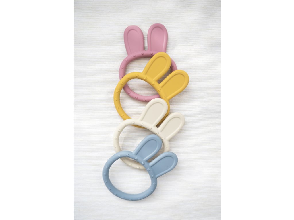 A kisgyermekek számára a szilikon természetesebb, mint a műanyag vagy a fém. A nyuszi formájú dizájn a legkisebb ökölbe is remekül illik. Nagyon kellemes rágcsálni és