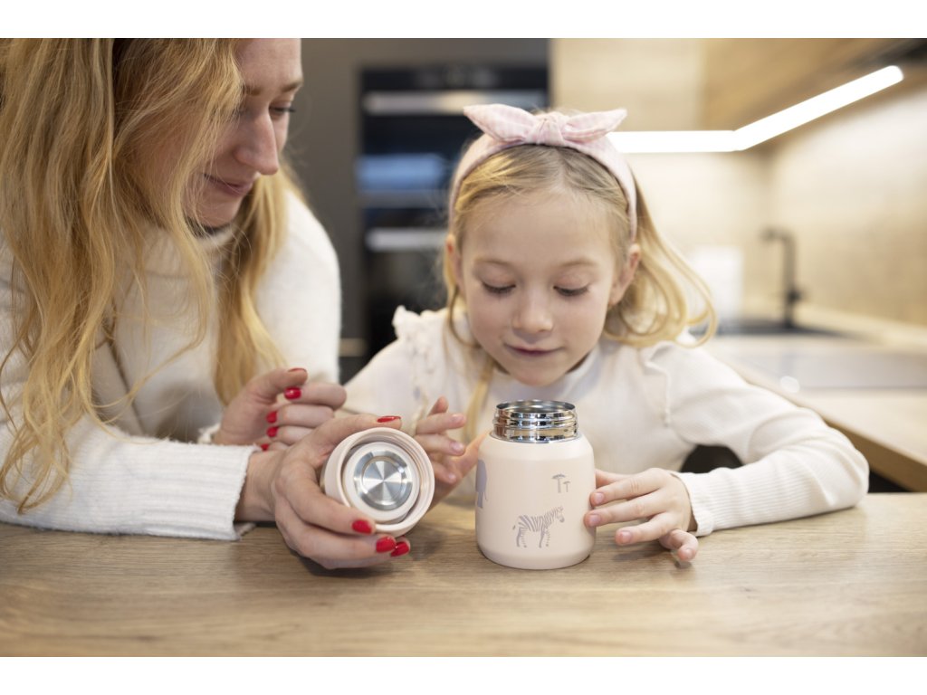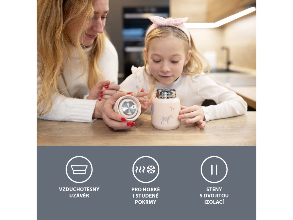 A műanyag dobozokhoz képest a rozsdamentes acél anyaga nem szívja magába a szagokat és ellenáll a foltoknak. Ráadásul szállítás közben nem szivárog belőle folyadék, mint a rosszul záródó műanyag ebédhordókból. A széles nyílásnak köszönhetően a termosz könnyen feltölthető, megtölthető vagy mosható. A termosz hosszabb ideig frissen tartja a gyümölcsöt és a zöldséget. A folyadékokhoz való termoszok használatával hozzájárul a műanyagfogyasztás csökkentéséhez. A termoszt kézzel mossa el, mosogatógépben nem mosható.