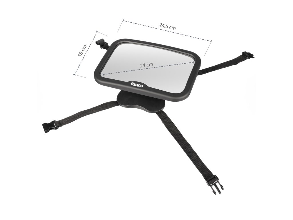 A Zopa elegáns és modern megjelenésű visszapillantó tükör nagyszerű segítőtárs a gyermekkel való utazásokhoz. A tükörnek köszönhetően a szülő bármikor ellenőrizheti a gyermeket vezetés közben, ha az ülés menetiránnyal ellentétesen van elhelyezve. A tükör domború kialakítása 360°-os kilátást biztosít a gyermekre. Az állítható pántok segítségével a tükör könnyen rögzíthető az ülés fejtámlájához. A rögzítés "X" vagy "kereszt" alakban is lehetséges.