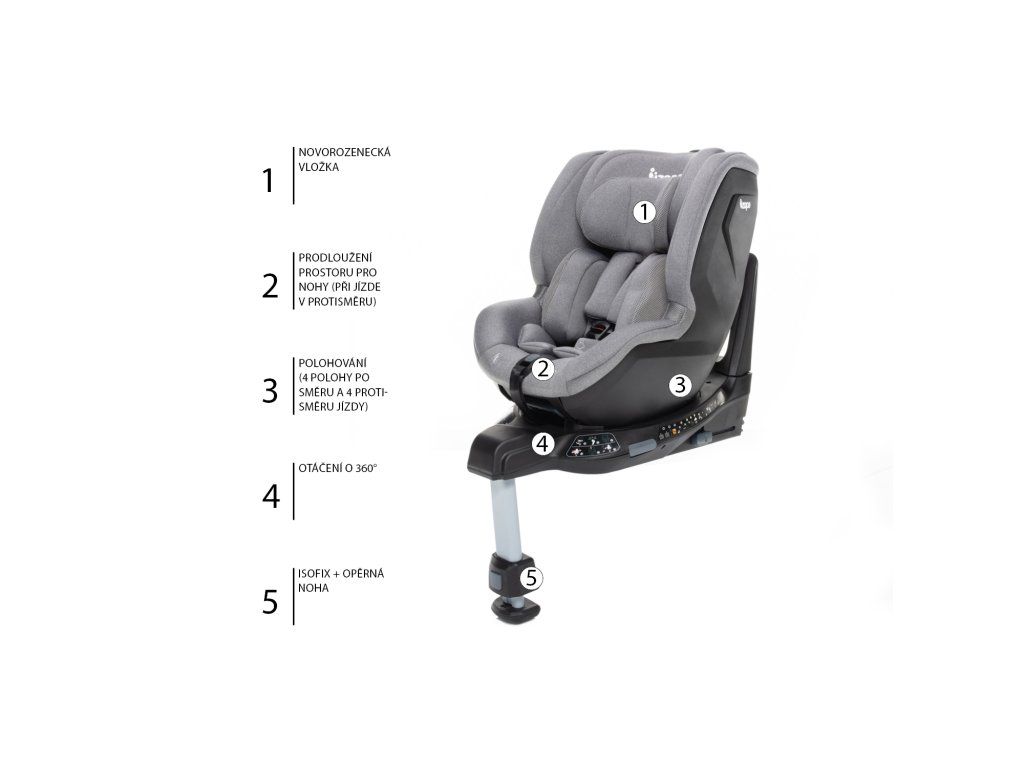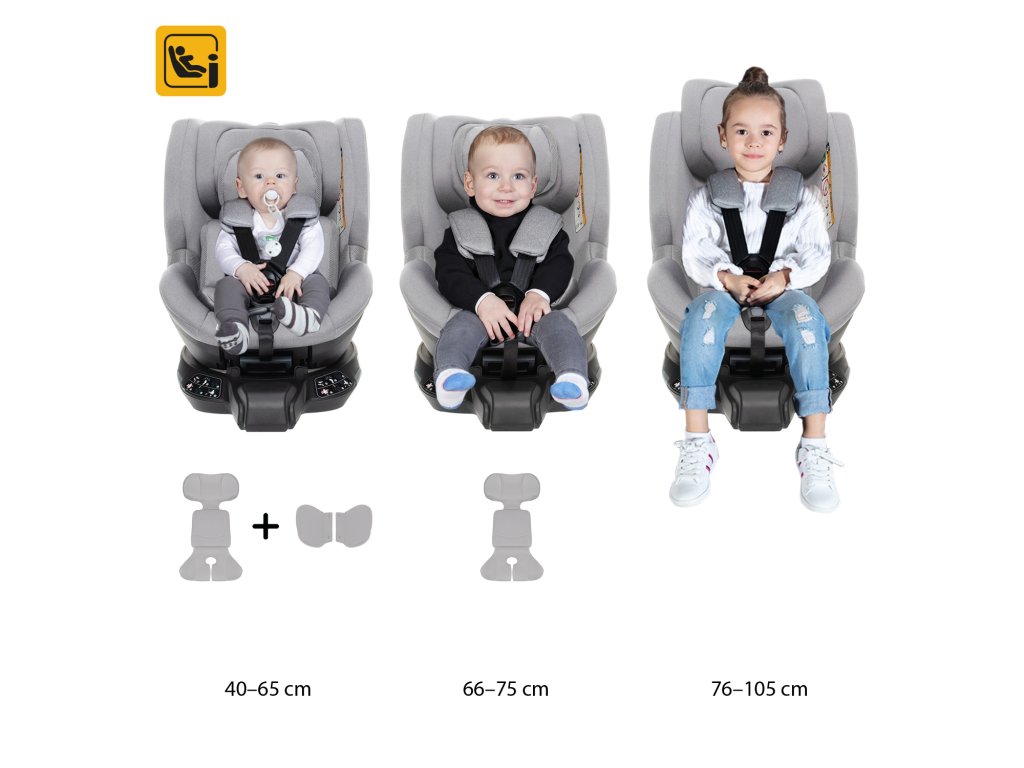Az autósülés a legszigorúbb hollandiai teszteken esett át, megfelel az norm ECE R129 i-Size szabványnak, és alkalmas újszülött kortól 105 cm-ig vagy 18 kg-ig. Teljesen forgatható (360°), ami nemcsak a menetirány megváltoztatását teszi lehetővé mind a 4 állítható helyzetben, hanem sokkal könnyebbé teszi a gyermek kezelését a be- és kiszállás során is.