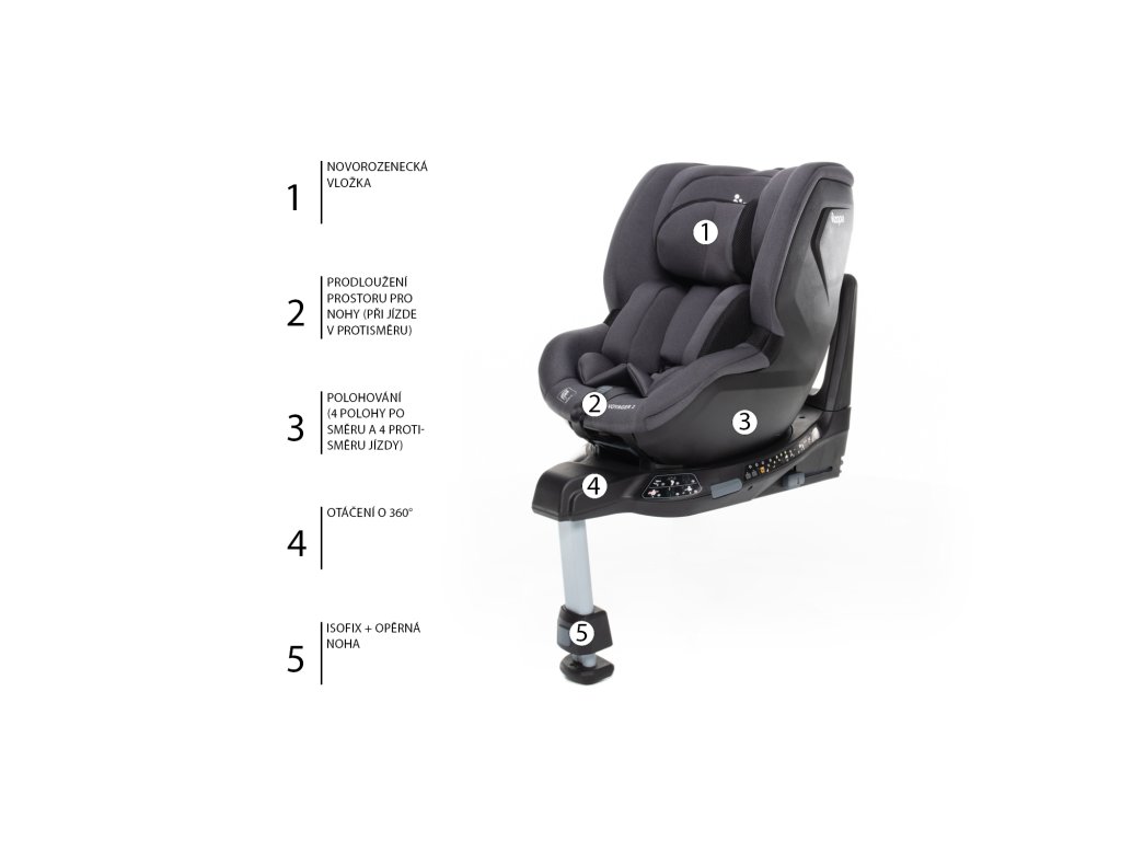 A gyermekek számára mindig a legbiztonságosabb menetiránnyal ellentétesen utazni, különösen a nyaki gerinc védelme érdekében. Fiatal korban a gerinc még nem elég fejlett, ami súlyos következményekkel járhat frontális ütközés esetén. Ezért van itt a Voyager 2 autósülés forgó mechanizmussal, amely lehetővé teszi, hogy menetiránnyal ellentétesen utazzon - ameddig csak használja. Valójában van egy állítható biztonsági ív, amely elegendő helyet biztosít a lábaknak még a nagyobb gyermekek számára is.