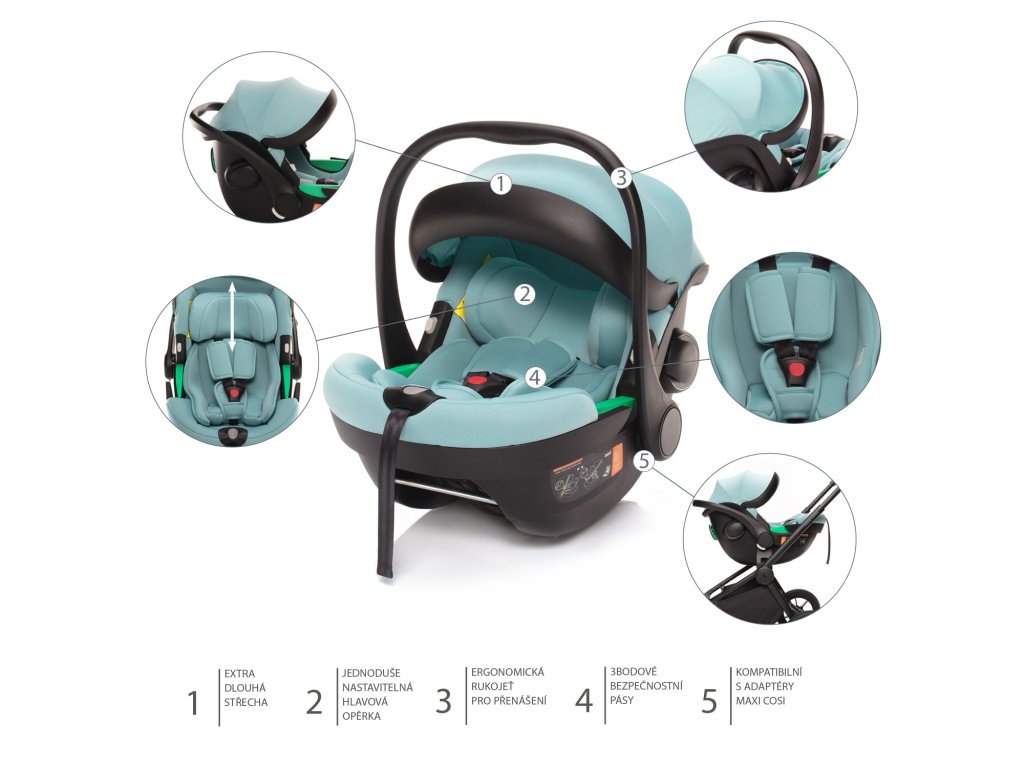 erős napsütéstől, a széllel szembeni kisebb esőtől. Az ergonomikus fogantyút úgy tervezték, hogy a lehető legkönnyebbé tegye a hordozást. A 3 pontos biztonsági övek